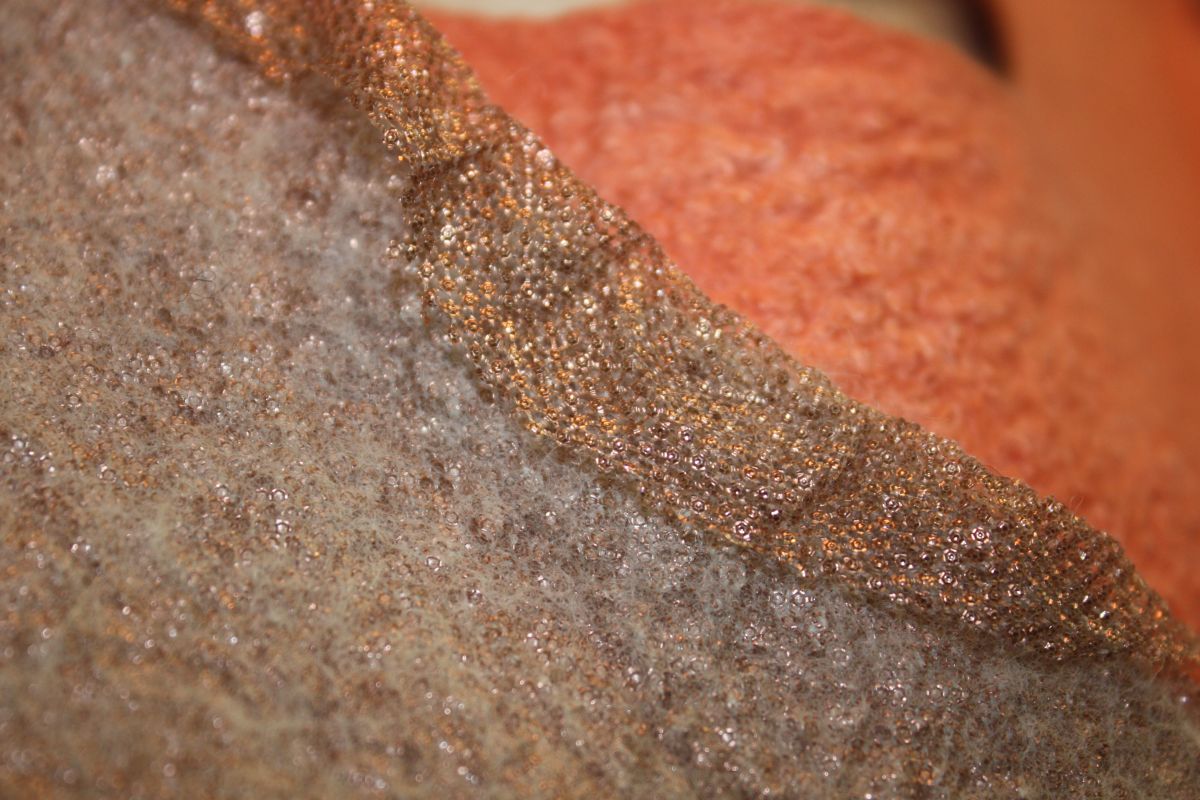 material: merinowolle/seide auf metallstoff von schläpfer gefilzt