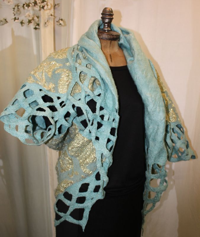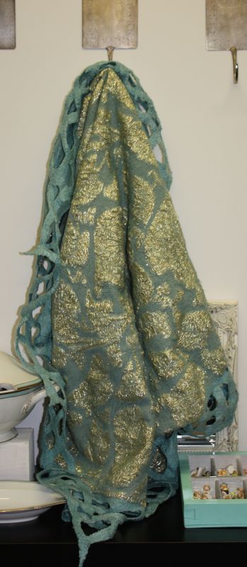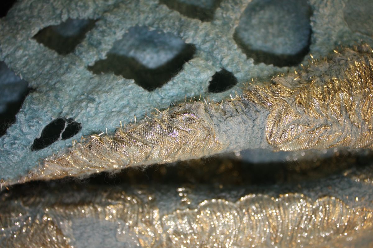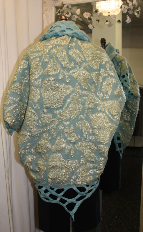 material: mit lurex bestickte seide von schläpfer mit seide/wolle befilzt